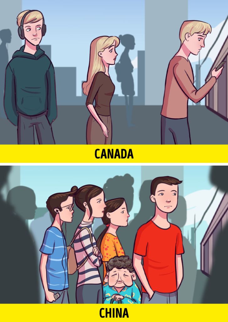 در کشورهای غربی فاصله گرفتن از دیگران و رعایت فضای شخصی آن ها یک قانون نانوشته است و نزدیک شدن بیش از اندازه به یک شخص کار بسیار ناپسندی شمرده می شود، به ویژه اگر آن شخص از جنس مخالف باشد. در برخی کشورها، به ویژه کشورهای پرجمعیتی مانند چین، رعایت فضای شخصی امری لوکس تلقی و جمع شدن افراد تنگ هم امری عادی دانسته می شود.