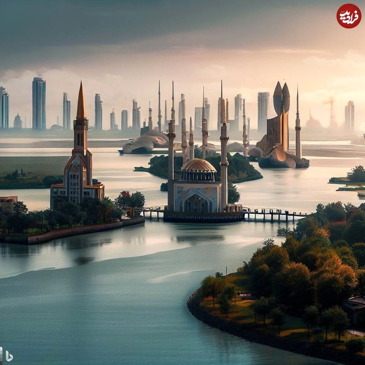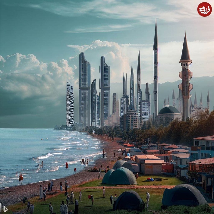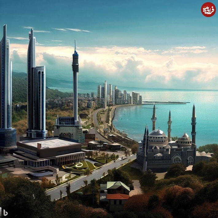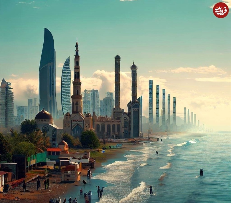 جزایر مصنوعی زیبا در میان دریا، آسمانخراشهای ساحلی سر به فلک کشیده، مساجد باشکوه، شهرهایی مدرن که از دل جنگلهای مهآلود سربرآوردهاند و رودخانههایی بدون آلودگی که از میان آنها عبور میکنند؛ این تصویر دلربا و خوشایندی است که هوش مصنوعی از آیندۀ سواحل شمالی ایران ارائه داده است.