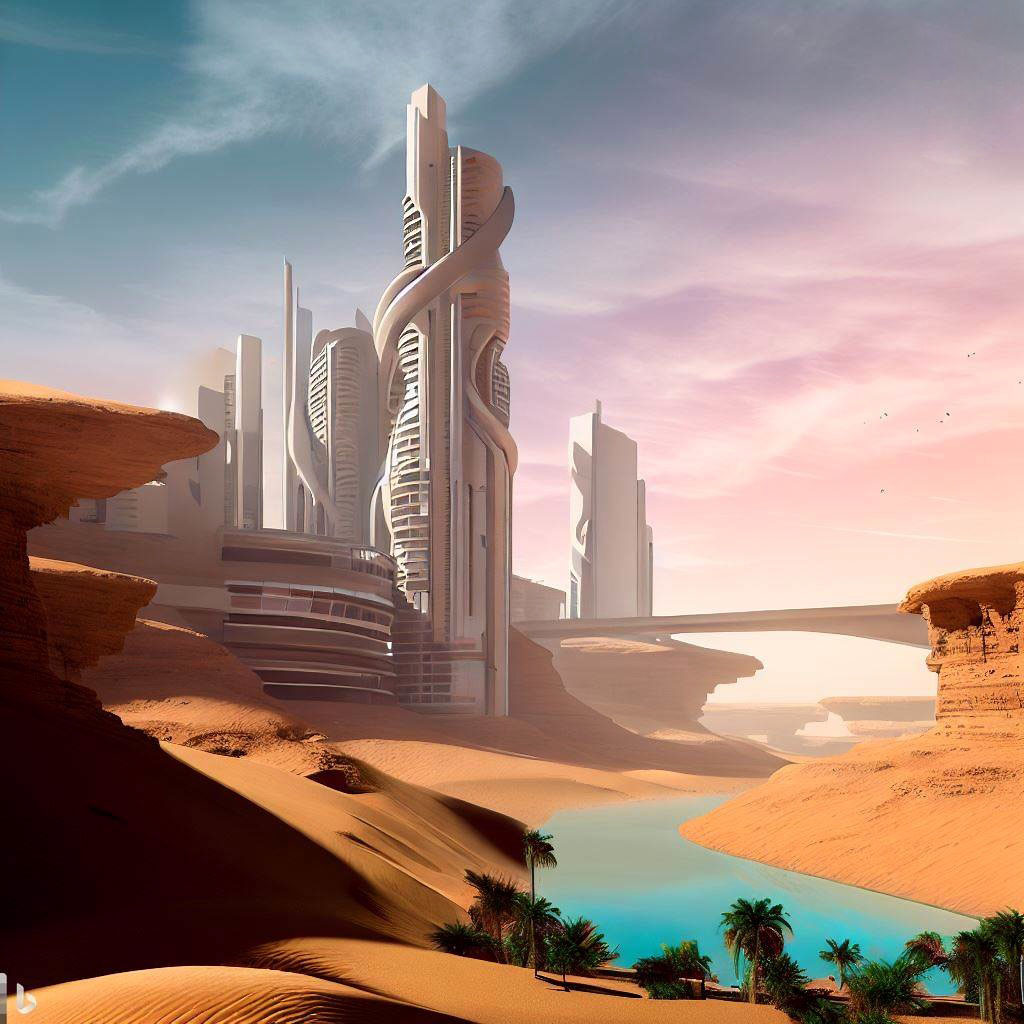 شاید تصاویری که در اینجا میبینیم خیالی و مجازی باشند اما همین تصاویر مجازی به ما نشان میدهند که چه امکان شگفتانگیزی میتواند در دل کویر نهفته باشد. کیست که دلش نخواهد دستکم برای مدتی در شهری مثل آنچه در اینجا میبینید زندگی کند؟