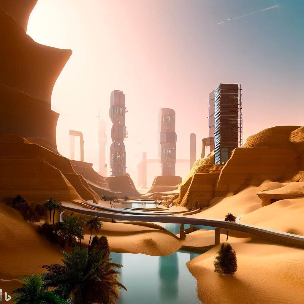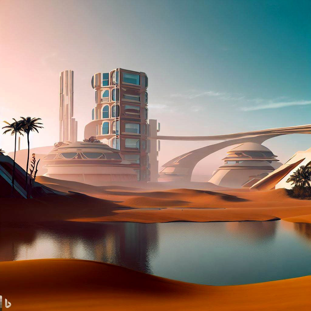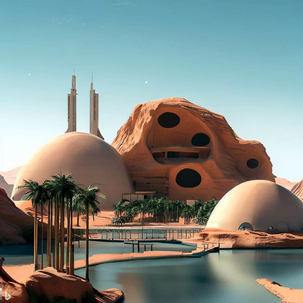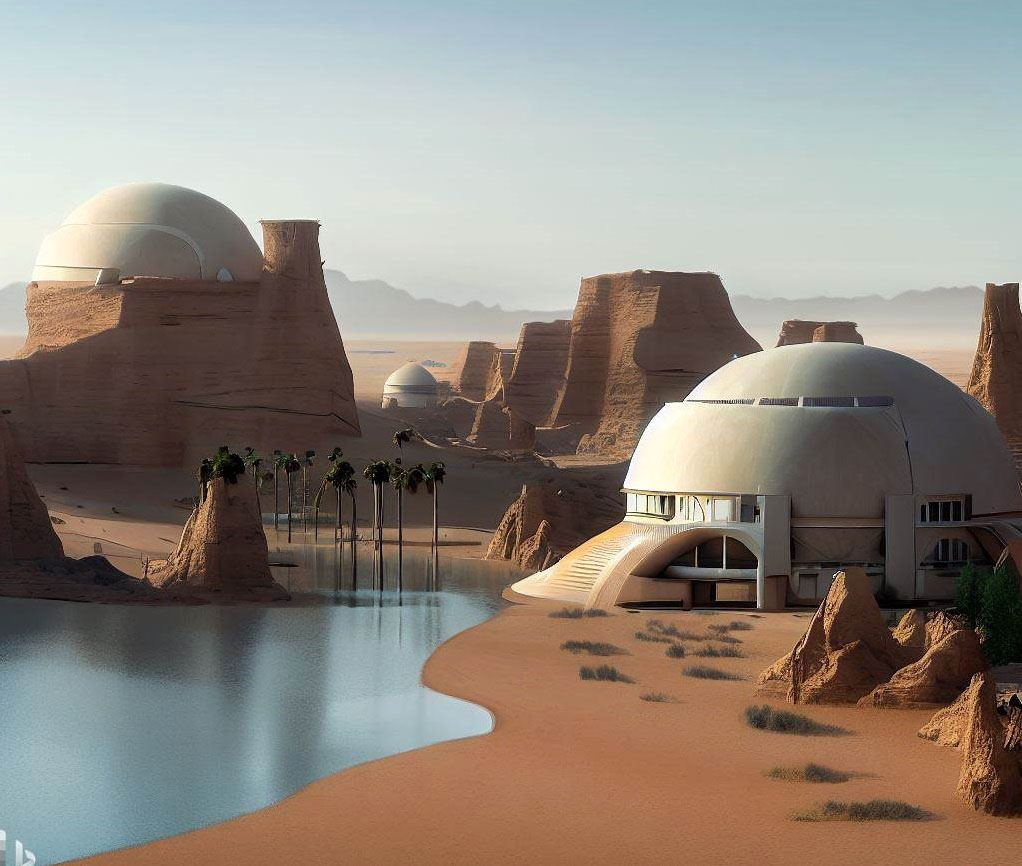 به گزارش سایت طلا، در اینجا تصاویری از یک چشمانداز خیالی از کویر لوت در هزار سال آینده را خواهید دید که هوش مصنوعی برای ما ترسیم کرده است. چشماندازی با دریاچههای مصنوعی، درختان نخل و ساختمانهایی با شکل و شمایل مختلف؛ از آسمانخراشهای مدرن گرفته تا عمارتهایی به رنگ خاک و گنبدهایی سپیدرنگ.
