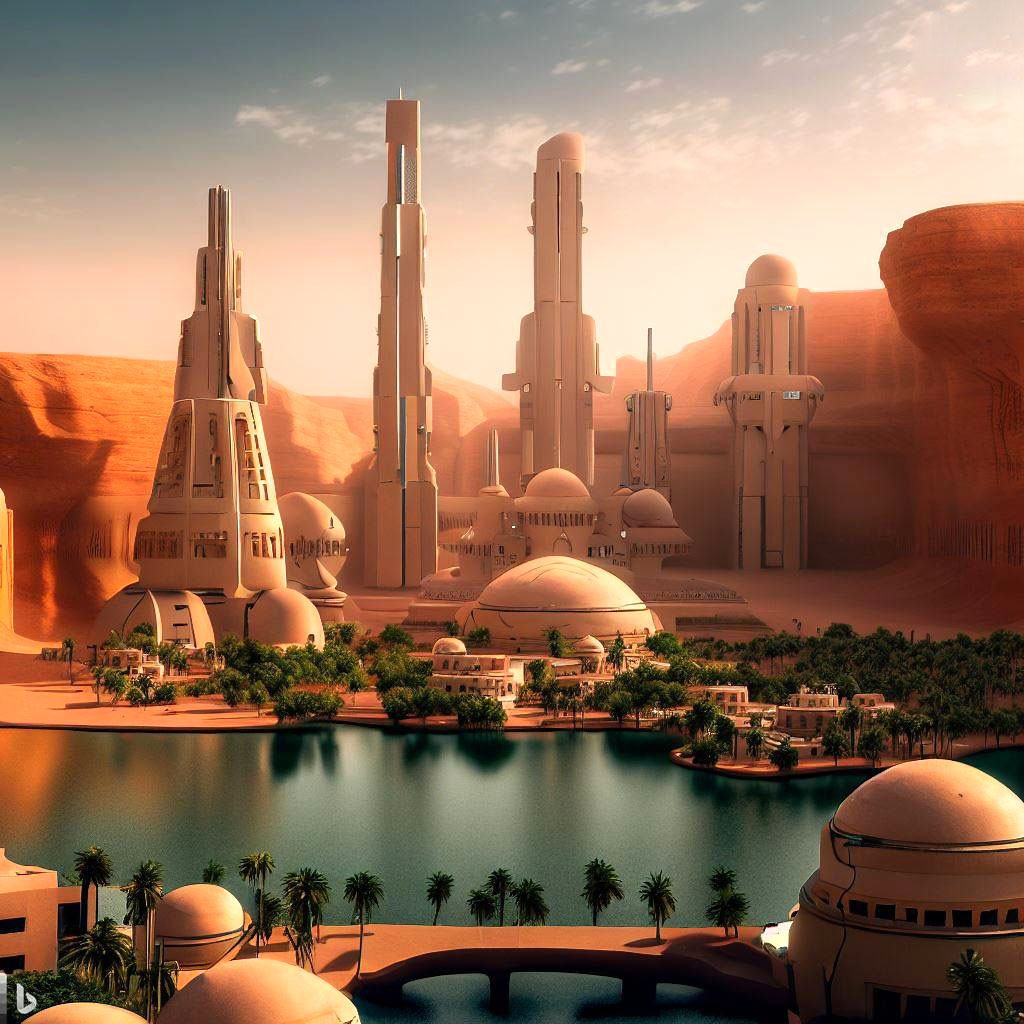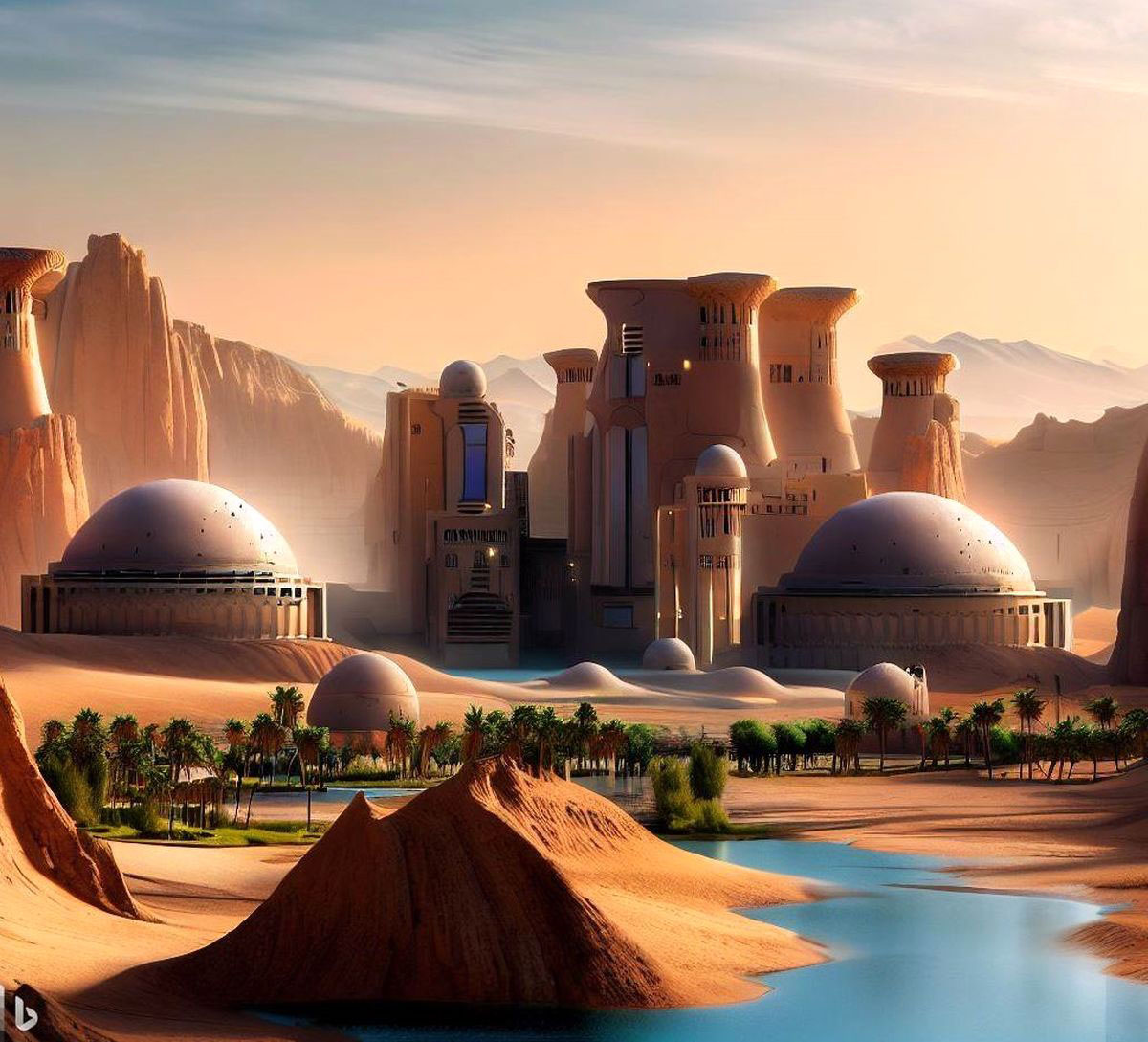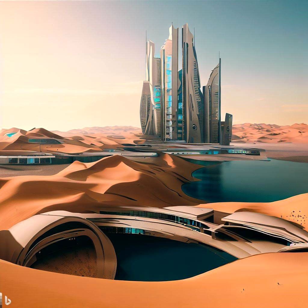 به گزارش سایت طلا، در اینجا تصاویری از یک چشمانداز خیالی از کویر لوت در هزار سال آینده را خواهید دید که هوش مصنوعی برای ما ترسیم کرده است. چشماندازی با دریاچههای مصنوعی، درختان نخل و ساختمانهایی با شکل و شمایل مختلف؛ از آسمانخراشهای مدرن گرفته تا عمارتهایی به رنگ خاک و گنبدهایی سپیدرنگ.