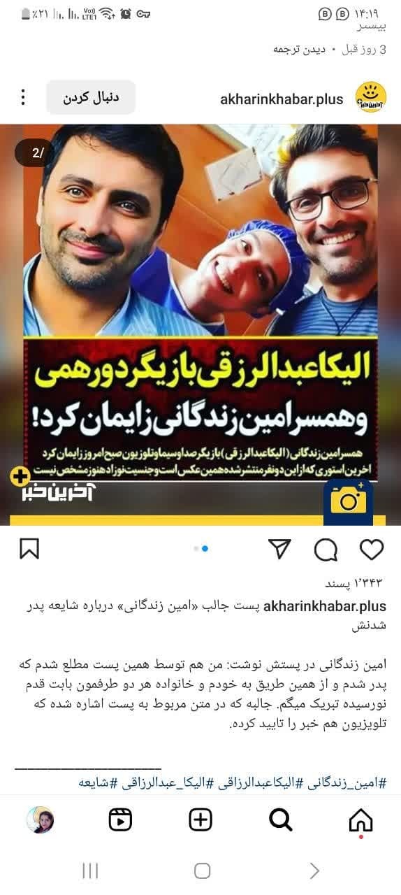 عکسی در اینستاگرام تحت عنوان پدر شدن امین زندگانی منتشر شد. ا