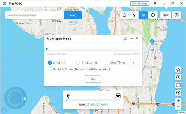 در مرحله اول روی آیکن «Multi-Spot Mode» کلیک کرده و مکانهای مورد نظرتان را انتخاب کنید. پس از انتخاب با کلیک روی Go سفر شما آغاز میشود.