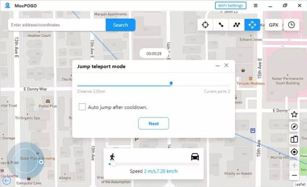 در حالت دستی باید روی گزینه Jump Teleport Mode کلیک کنید و مکانهای مورد نظرتان را از روی نقشه انتخاب کنید. سپس با کلیک روی Go این حالت آغاز میشود.