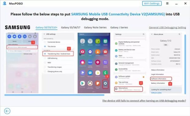 اگر برای اولین بار از برنامه استفاده میکنید، باید حالت Developer Mode روی آیفون و USB Debugging روی اندروید فعال باشد.