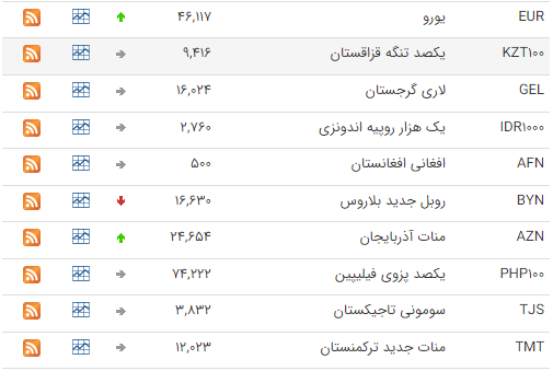 در همین سایت قیمت یورو توافقی نیز امروز با افزایش 105 تومانی رقم میانگین 45 هزار و 376 تومان برای آن درج شده است.