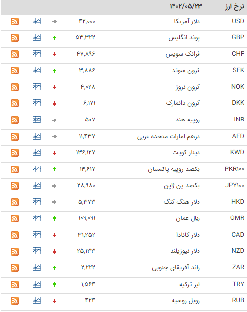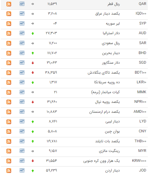 نرخ رسمی درهم امارات عربی متحده، افغانی افغانستان، یکصد ين ژاپن و يکصد دينار عراق هم بدون تغییر باقی ماند.