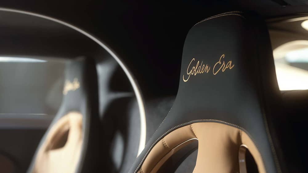 بدنه بوگاتی شیرون سوپر اسپرت نسخه ویژه Golden Era رنگ طلایی خاصی با نام Doré و همچنین لایهای متالیک به رنگی با نام Nocturne Black دارد. روی این رنگ طلایی دیدنی بدنه و همچنین داخل کابین دستکشیدههای ساختههای جدید و قدیمی بوگاتی به چشم میخورند. در واقع، این شیرون یک سوپرکار سفارشی پر زرق و برق پرهزینه برای گشتوگذار در خیابانها نیست، بلکه ساختهای است که فقط یک عاشق و شیفتهِ آشنا به تاریخ بوگاتی از تماشای آن در پارکینگ خود لذت میبرد. نظر شما کاربران گجت نیوز راجع به این خودرو چیست؟