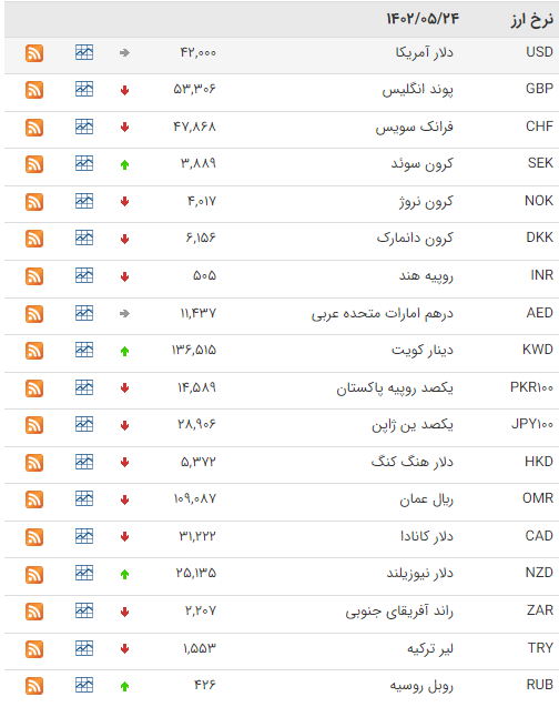 بانک مرکزی امروز سه شنبه (۲۴ مرداد)، نرخ هر پوند را ۵۳ هزار و ۳۰۶ ریال و یورو را ۴۵ هزار و ۸۷۳ ریال اعلام کرد.