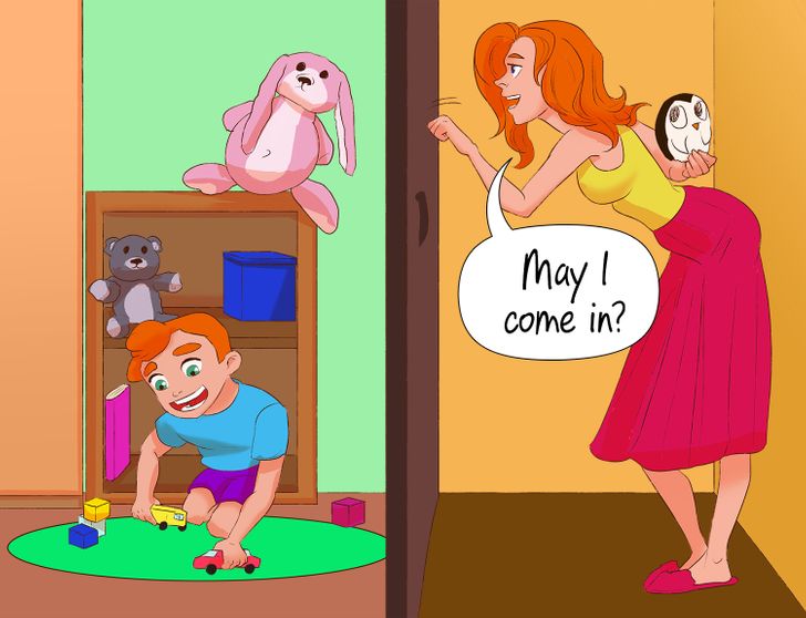 بسیاری از والدین معتقدند فرزندان شان نباید بدون در زدن وارد اتاق آن ها شوند، اما خود این را در مورد فرزندان شان رعایت نمی کنند. این قانون در خانواده باید برای همه ی اعضای خانواده وجود داشته باشد. والدین باید به حریم شخصی فرزندان شان احترام بگذارند تا فرزندان شان هم همین کار را با آن ها انجام دهند.
