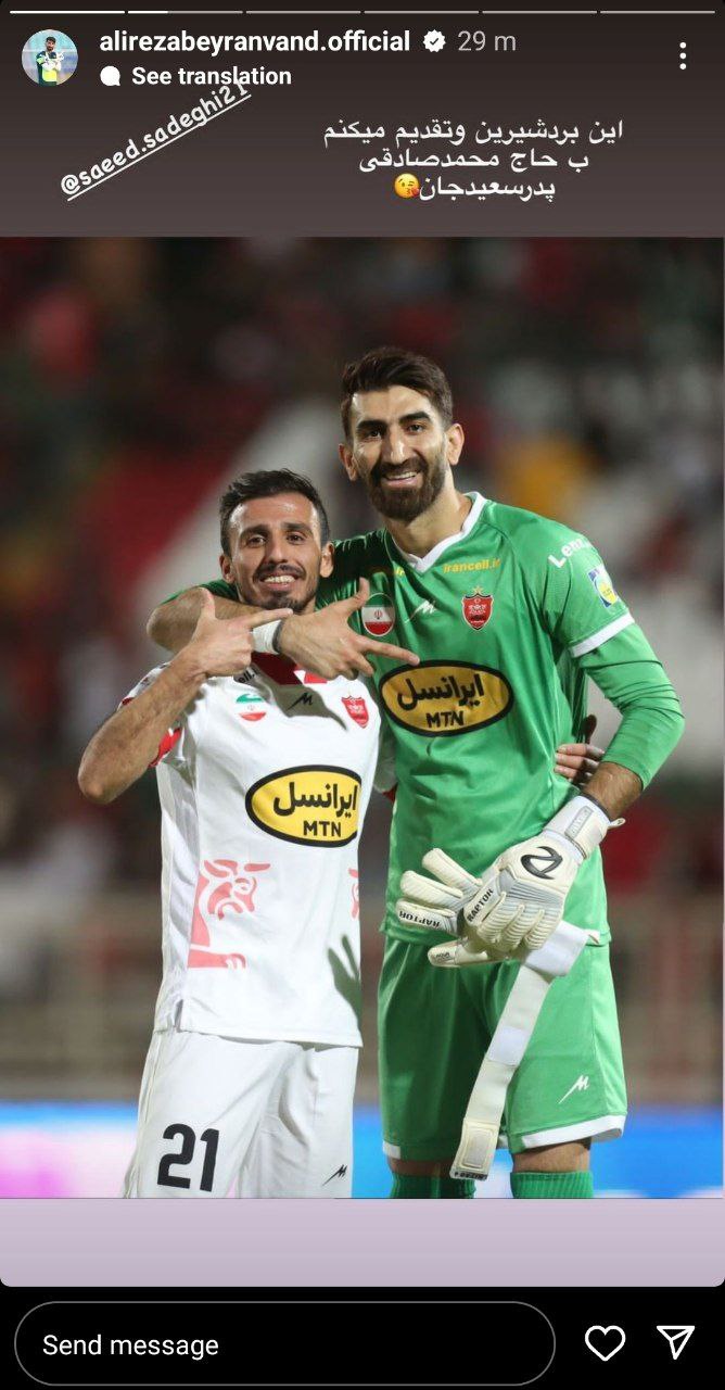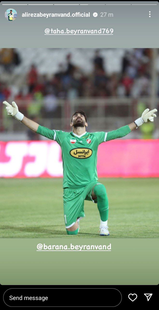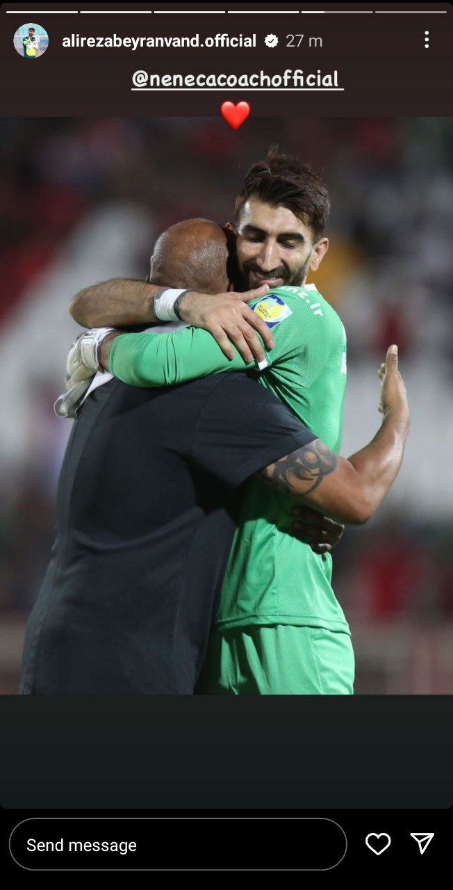 بیرانوند که پس از پایان بازی مقابل تراکتور به همراه بقیه بازیکنان پرسپولیس با مطرح کردن مشکلات مالی این روزهای پرسپولیس به نوعی با هواداران درد و دل کرد، پس از آن با انتشار عکس های مختلف در فضای مجازی تحت قالب استوری در اینستاگرام به نوعی رضایت خود را از نتیجه این بازی بزرگ اعلام کرد.