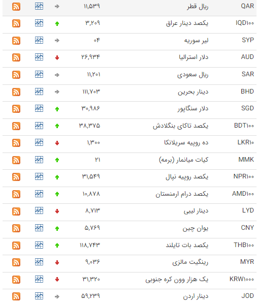 هر لیر ترکیه هم به ترتیب ۱۳ هزار و ۷۳۶ و ۱۳ هزار و ۸۶۱ ریال خرید و فروش شد. هر یوان چین هم ۵۱ هزار و ۱۲۲ ریال خرید و ۵۱ هزار و ۵۸۶ ریال فروخته شد.
