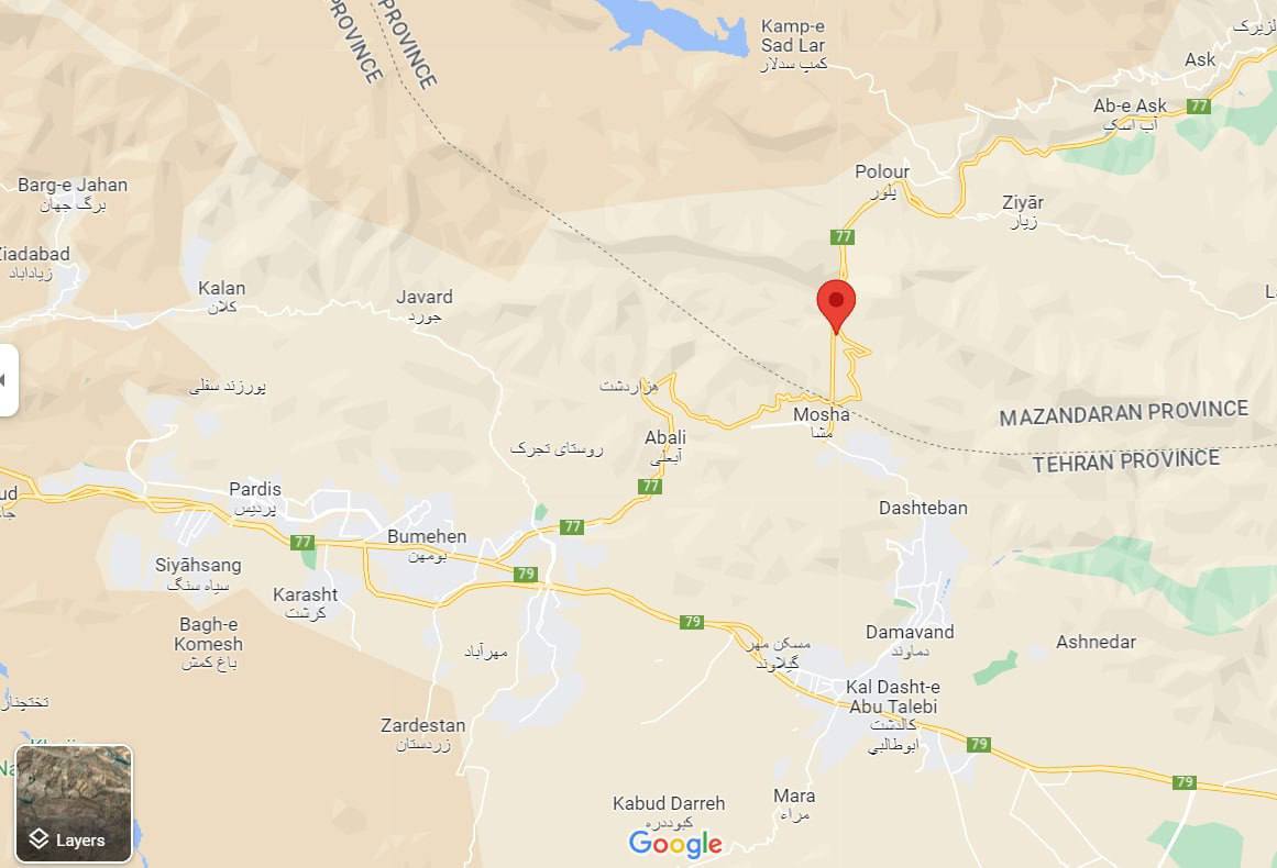 این زمینلرزه در فاصله ۵۹کیلومتری تهران، ۱۳ کیلومتری رودهن، ۱۰ کیلومتری شمال غربی دماوند، ۷ کیلومتری آبعلی استان تهران رخ داد.