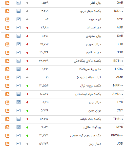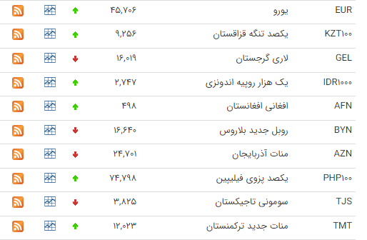 بر این اساس نرخ رسمی یورو، افغانی افغانستان، لير ترکيه و یوان چين افزایش و نرخ پوند انگليس، یکصد ين ژاپن، دلار کانادا و دلار استراليا کاهش یافت.