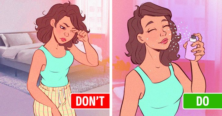 برای بیدار کردن خود لازم نیست حتماً دوش آب سرد بگیرید؛ هر گونه تغییر دمایی همان اثر را خواهد داشت. یک اسپری آب کنار تخت خود بگذارید و صبح ها مقداری از آن به صورت خود بپاشید.