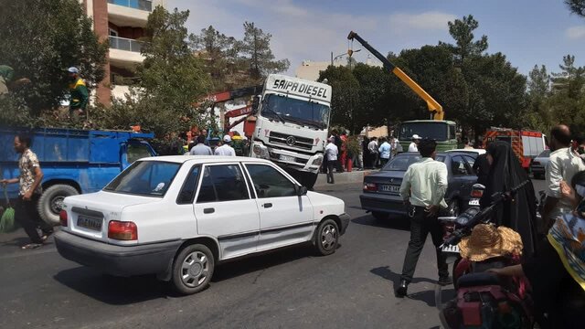 انحراف تریلی از خیابان و برخورد به بلوار وسط معبر، منجر به شکستن و آسیب به چند درخت در این نقطه از شهر شد.
