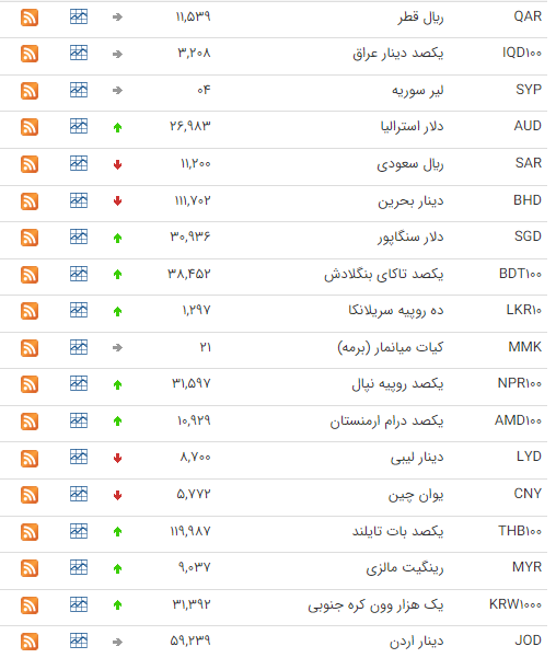 هر لیر ترکیه هم ۱۵ هزار و 45 ریال خرید و ۱۵ هزار و 182 ریال فروخته شد. هر یوان چین هم ۵۶ هزار و 240 ریال خرید و ۵6 هزار و 751 ریال فروخته شد.