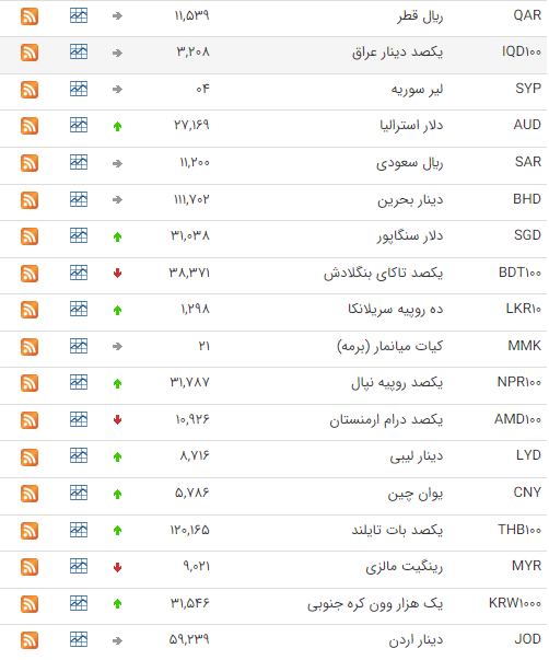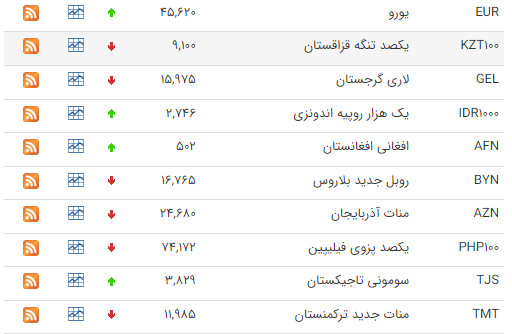 بر این اساس نرخ رسمی یورو، یکصد ین ژاپن، دلار کانادا، دلار استرالیا و ریال عمان افزایش و نرخ پوند و یکصد روپیه پاکستان کاهش یافت.