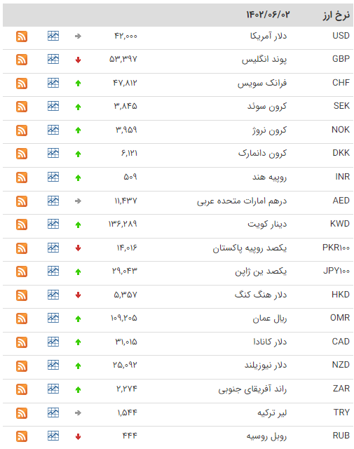 بانک مرکزی امروز پنج شنبه (۲ شهریور)، نرخ هر پوند را ۵۳ هزار و ۳۹۷ ریال و یورو را ۴۵ هزار و ۶۲۰ ریال اعلام کرد.