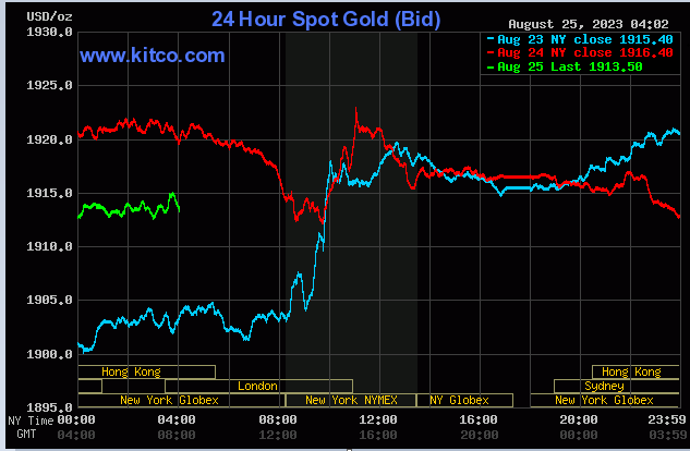 روز گذشته در حالی که سرمایهگذاران منتظر بودند ببینند فدرال رزرو آمریکا در نشست سالانه جکسون هول چه سیگنالهای نرخ بهره ارائه خواهد کرد، قیمت طلا به بالاترین حد دو هفته اخیر در نوسان بود و به 1922 دلار رسید.