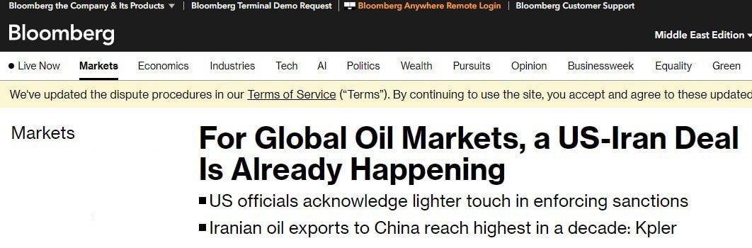 بلومبرگ در پایان نوشت آمریکا همچنان نسبت به فروش نفت ایران به کشورهایی همچون ژاپن، کره جنوبی و کشورهای اروپایی حساس است اما در برابر فروش نفت به چین از خود نرمش نشان میدهد.