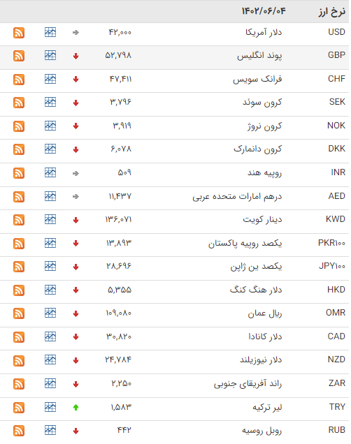 بانک مرکزی امروز شنبه (۴ شهریور)، نرخ هر پوند را ۵۲ هزار و ۷۹۸ ریال و یورو را ۴۵ هزار و ۳۰۶ ریال اعلام کرد.