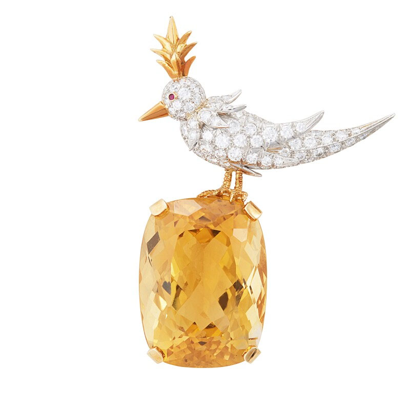 این قطعات شامل یک سنجاق با یک پرنده الماسی به همراه یک یاقوت کبود صورتی و همچنین یک قطعه با طلای زرد 18 عیار، یک تورمالین سبز بزرگ بیش از 58 قیراط و یک پرنده با لهجه الماسی و یک یاقوت کبود صورتی است. احتمالاً این قطعات سفارشی ساخته شدهاند و قیمت تخمینی نشان میدهد که هر دو قطعه به خوبی از مرز 100 هزار پوند (یا معادل آن به ارز محلی) فراتر میرود.