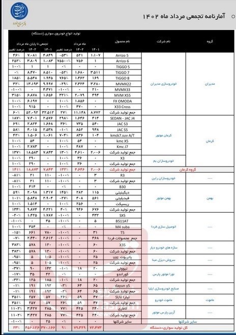 براساس اعلام وزارت صنعت، نزدیک به 537 هزار دستگاه خودرو از ابتدای امسال تا پایان مردادماه تولید شده است.در مدت یاد شده 62 هزار دستگاه خودروی وانت در کشور تولید شده که در مقایسه با مدت مشابه پارسال از 52 درصد رشد برخوردار بوده است. علاوه بر این در پنج ماهه نخست امسال حدود یکهزار و 370 دستگاه خودروی ون تولید شده که درمقایسه باسال گذشته 70 درصد رشد را نشان میدهد.