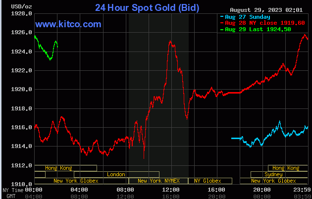 بهای هر اونس طلا امروز در لحظه تنظیم این گزارش با 10 دلار افزایش به1925 دلار رسید که بالاترین سطح از ۱۰ اگوست است