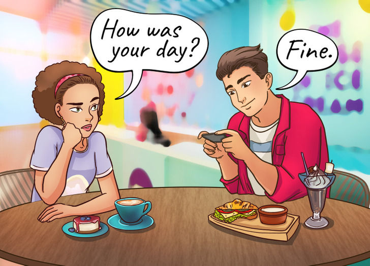 اگر کسی را دیدید که تمام روز از صفحه ی موبایلش چشم برنمی دارد، این امر می تواند نشانه ی ترس او از مواجهه یا نگرانی اش از پیام هایی باشد که ممکن است هر لحظه روی صفحه ی تلفن همراهش ظاهر شوند. اگر شریک عاطفی یا دوست شما یکباره این عادت را پیدا کرده، نباید از کنار آن ساده عبور کنید. مثلاً اگر سخت می تواند در زمان خوردن غذا با شما مکالمه داشته باشد و تمام مدت درگیر نوتفیکیشن های تلفن همراه خود است، سعی کنید حواس تان به کارهایش باشد و در صورت لزوم با او رو در رو شوید.