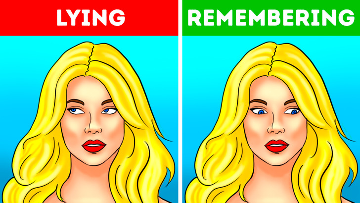 خودداری از نگاه مستقیم همیشه نشانه ی دروغگویی نیست. اما اگر متوجه شدید که فرد مقابل تان دائماً نگاهش را از شما می دزدد (نگاه خود را اغلب به سمت گوشه های راست یا چپ چشم هایش می برد)، ممکن است در حال دروغ گفتن باشد. با این حال، نباید آن را با نگاه رو به پایین اشتباه بگیرید. آدم ها معمولاً زمانی که سعی دارند چیزی را به خاطر آورند به سمت پایین نگاه می کنند. برای آنکه از راست بودن صحبت های فرد مقابل تان مطمئن شوید می توانید درباره ی چیزهایی که می گوید سؤالات جزئی از او بپرسید یا از او بخواهید که ماجرا را برعکس برایتان تعریف کند.