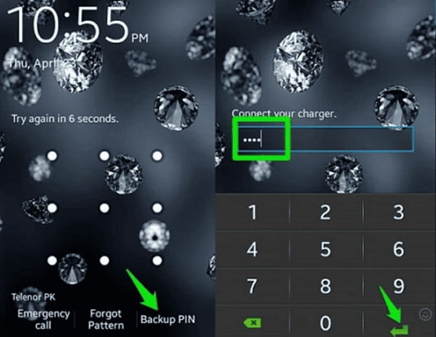 پترن اشتباهی را روی گوشی خود وارد کرده و سپس گزینه Forget Pattern را فشار دهید تا با دو گزینه Google Account و Backup Pin روبرو شوید!