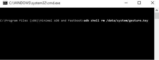 در صفحه ظاهر شده عبارت adb shell rm/data/system/gesture.key را وارد کرده و کلید اینتر را فشار دهید. سپس گوشی خود را از کامپیوتر جدا کرده و ریبوت کنید.