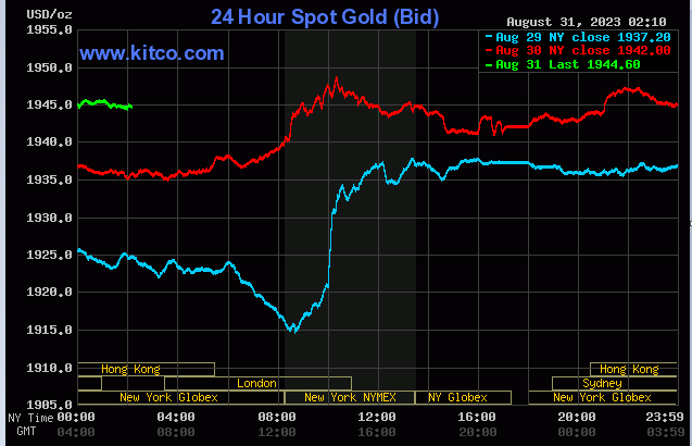 به گزارش سایت طلا،بهای هر اونس طلا در لحظه تنظیم این گزارش یا 6 دلار افزایش به ۱۹۴۵ دلار رسید.