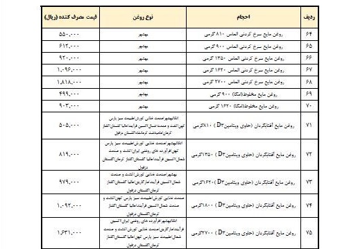 براساس اعلام انجمن روغن نباتی در پی کاهش قیمت جهانی روغن خام و تعامل صنعت روغن نباتی با دولت، قیمت انواع روغن نباتی از تاریخ ۹ شهریور ۱۴۰۲ بین ۱۰ تا ۱۵ درصد کاهش یافت.