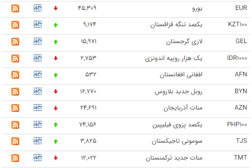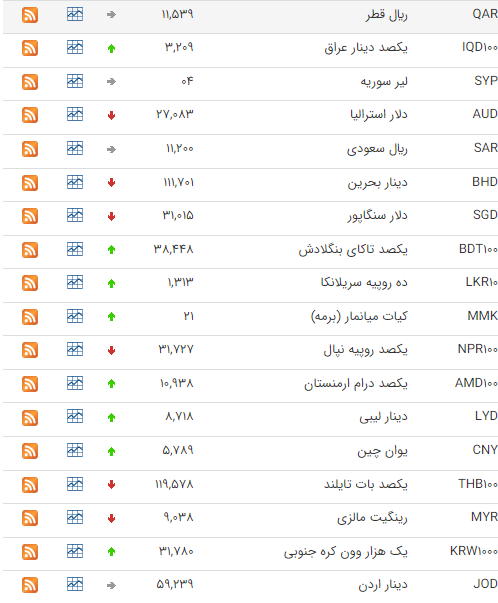 هر لیر ترکیه هم ۱۵ هزار و ۳۱۰ ریال خرید و ۱۵ هزار و ۴۴۹ ریال فروخته شد. هر یوان چین هم ۵۶ هزار و ۳۹۰ ریال خرید و ۵۶ هزار و ۹۰۲ ریال فروخته شد.
