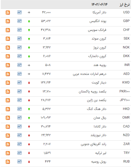نرخ رسمی ریال قطر و درهم امارات متحده عربی هم بدون تغییر باقی ماند.