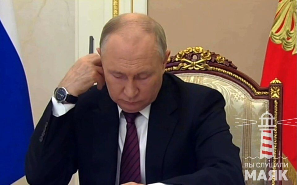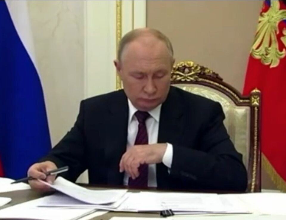 بعداً در جلسه، رهبر ۷۰ ساله کرملین در حالی دیده شد که ساعت را به طور کامل درآورده و بی قرار به نظر می رسد.