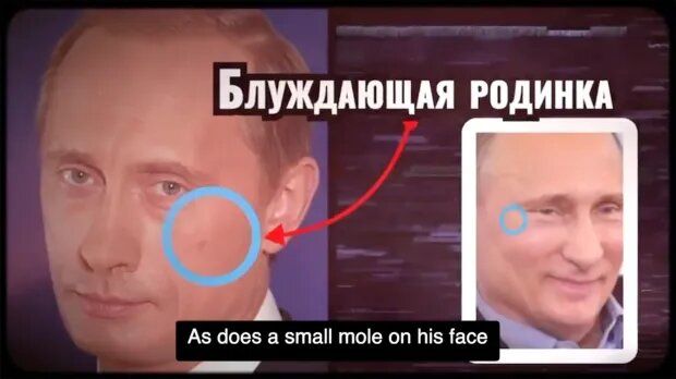 فیلم منتشر شده با این عنوان مطرح شد: "چه کسی از ماریوپل بازدید کرد؟!" در آن نوشته شده بود: متخصصان مدت‌ها پیش متوجه اختلافات در بدن رئیس‌جمهور روسیه شده‌اند. یک برآمدگی روی لاله گوش پوتین دائماً تغییر می کند، همانطور که یک خال کوچک روی صورت او نیز تغییر می کند. یکی از پوتین‌ها چین و چروک‌های مستقیمی روی صورتش دارد، دیگری چروک‌های کوچک و منقطع دارد. این غیرممکن است حتی اگر او تزریق بوتاکس داشته باشد.