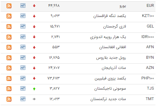 هر یورو نیز به صورت اسکناس 44 هزار و 231 تومان و حواله آن 40 هزار و 210 تومان قیمتگذاری شد