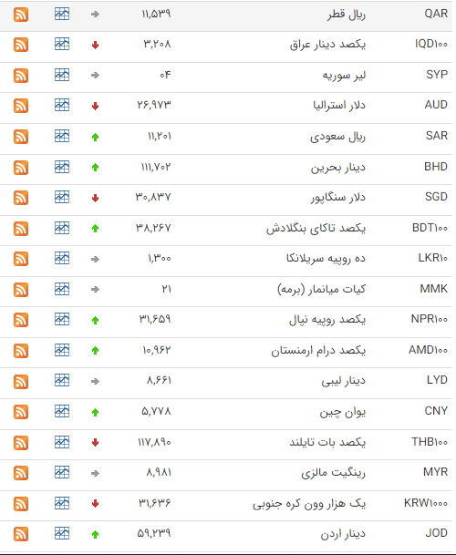 بر این اساس نرخ رسمی دلار کانادا و یوان چين افزایش و نرخ پوند انگليس، یورو، یکصد ين ژاپن، لير ترکيه، يکصد دينار عراق و دلار استراليا کاهش یافت.