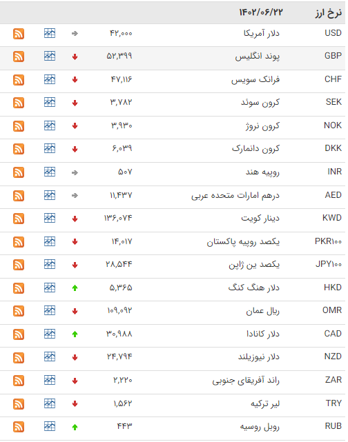 نرخ رسمی درهم امارات متحده عربی و افغانی افغانستان هم بدون تغییر باقی ماند