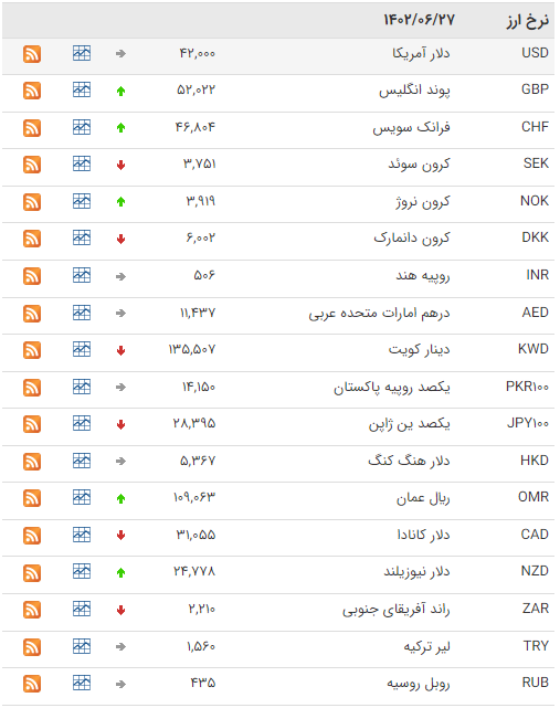 نرخ رسمی ریال قطر و درهم امارات متحده عربی هم بدون تغییر باقی ماند.