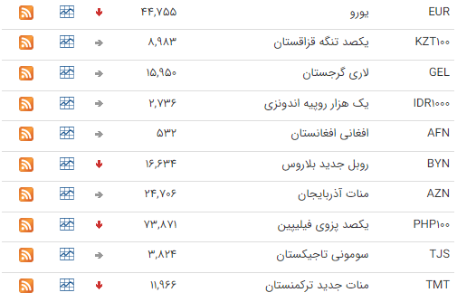 هر یورو نیز به صورت اسکناس 44 هزار و 18 تومان و حواله آن 40 هزار و 16 تومان قیمتگذاری شد