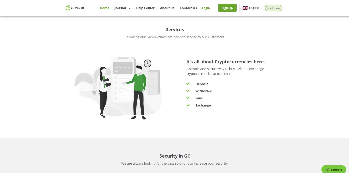پیش از هر چیزی باید بگوییم که ارائه خدمات پشتیبانی سایت گرین چنج، در سطح بالایی انجام می شود و رضایتمندی کاربران را جلب کرده است. این صرافی از پشتیبانی 24 ساعته برخوردار می باشد که از طریق تماس تلفنی، چت زنده، چت در واتس اپ و ایمیل انجام می شود. با این حال، برخی از سرمایه گذاران ایرانی کنجکاو هستند بدانند آیا وب سایت گرین چنج از زبان فارسی پشتیبانی می کند؟ در این باره باید بگوییم که سایت گرین چنج در گذشته از زبان فارسی پشتیبانی می کرد و معامله گران ایرانی می توانستند هنگام ورود به وب سایت گرین چنج، زبان پلتفرم را به فارسی تغییر داده و تمامی خدمات را به صورت فارسی دریافت کنند.