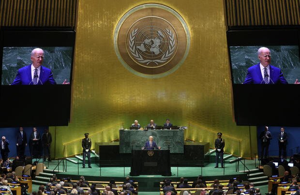 بایدن گفت: روسیه به تنهایی بر سر راه صلح ایستاده است زیرا قیمت روسیه برای صلح تسلیم شدن اوکراین، خاک اوکراین و فرزندان اوکراین است. روسیه خسته خواهد شد. اما از شما می پرسم: اگر ما اصول اصلی ایالات متحده را برای راضی کردن یک متجاوز کنار بگذاریم، آیا هر کشور عضوی در این سازمان می‌تواند مطمئن باشد که پس از نابودی اوکراین حفظ می‌شود؟ آیا استقلال هر ملتی امنیت دارد؟ واشنگتن همچنان در کنار مردم اوکراین می‌ایستد تا از حاکمیت و تمامیت ارضی و آزادی خود دفاع کند.