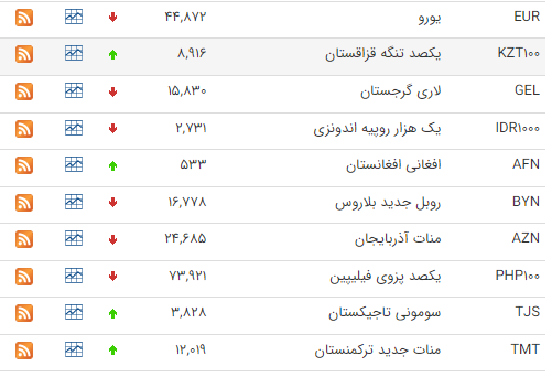 هر یورو نیز به صورت اسکناس 44 هزار و17 تومان و حواله آن 40 هزار و 15 تومان قیمتگذاری شد