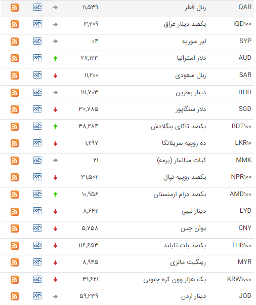 نرخ رسمی ریال قطر و درهم امارات متحده عربی هم بدون تغییر باقی ماند.