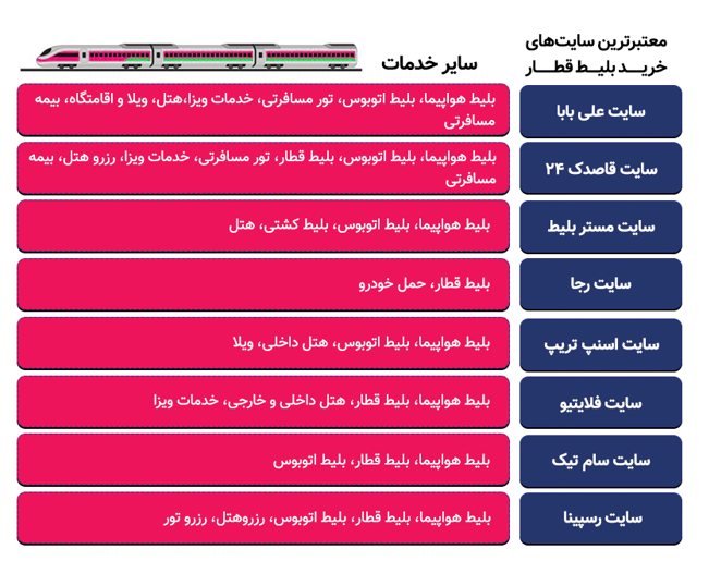خدمات معتبرترین سایتهای خرید بلیط قطار