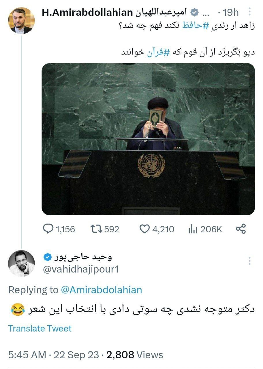 وزیرخارجه در توئیتش گاف داد! حسین امیر عبداللهیان وزیر امورخارجه جمهوری اسلامی ایران و گوستاو مانریک وزیر امورخارجه اکوادور روز پنجشنبه به وقت محلی در نیویورک دیدار و گفت وگو کردند.